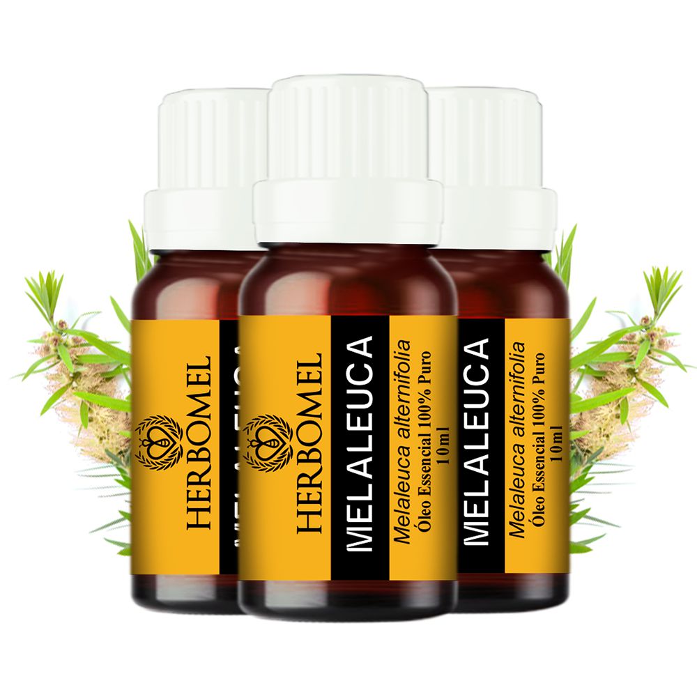 Kit 03 Unidades Óleo Essencial de Melaleuca (Tea tree) Melaleuca alternifólia 10mL 100% Puro HerboMel Natural